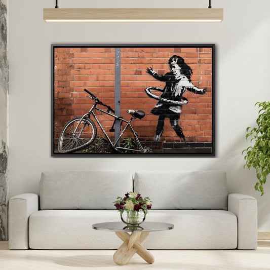 Banksy Hula Hooping Girl with Bike - Framed Canvas Wall Art Prints