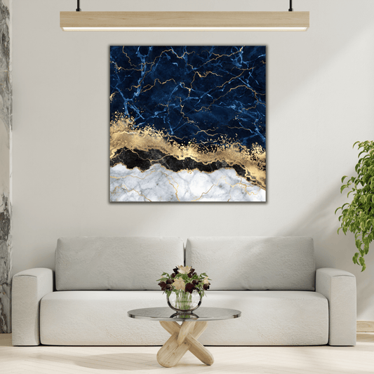 Blue Gold Marble Canvas Print - Modern Abstract Wall Decor