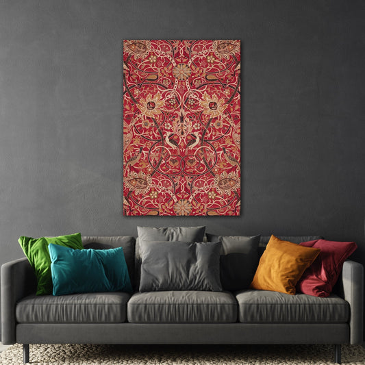 Victorian Elegance Floral Canvas Print - Ornate Red and Gold Pattern