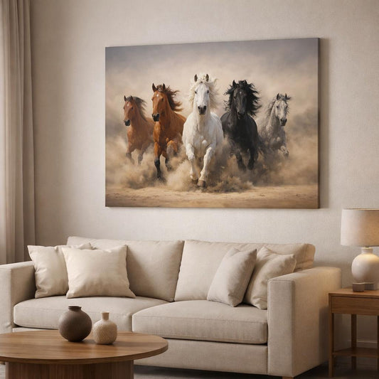 Animals Horses Golden Horse Landscape - Canvas Wall Art Print