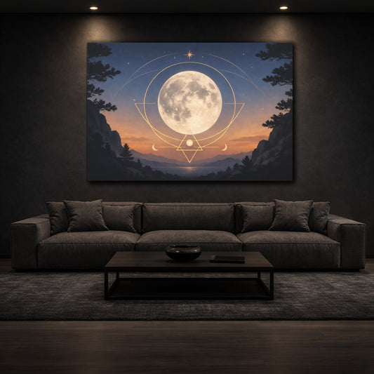 Abstract Moon Sacred Geometry - Canvas Wall Art Print