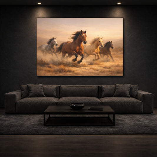 Animals Wild Horses Brown And Gold - Canvas Wall Art Print