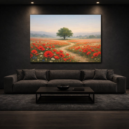 Nature Poppy Field Red Landscape - Canvas Wall Art Print