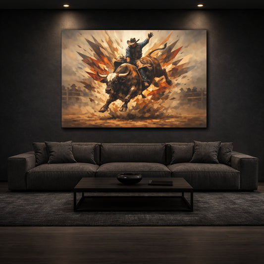Sports Bull Riding Brown And Orange - Canvas Wall Art Print