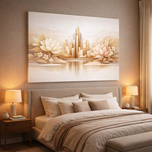 Floral Modern Abstract Skyline Lotus Flowers - Canvas Wall Art Print