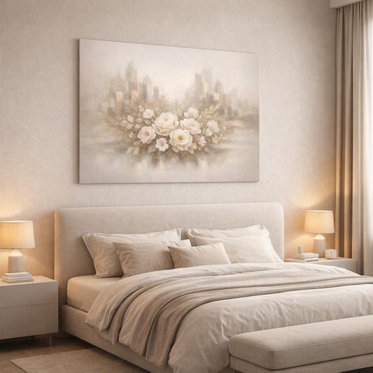 Floral Neutral Abstract City Flowers - Canvas Wall Art Print