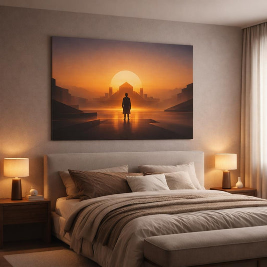 Golden Glow Modern Geometry Solitary Figure Science Fiction - Canvas Wall Art Print