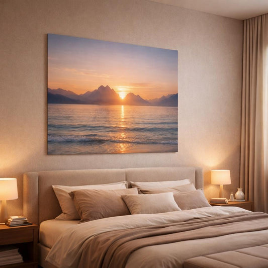 Seascape Mountain Sunrise Sunset Nature - Canvas Wall Art Print