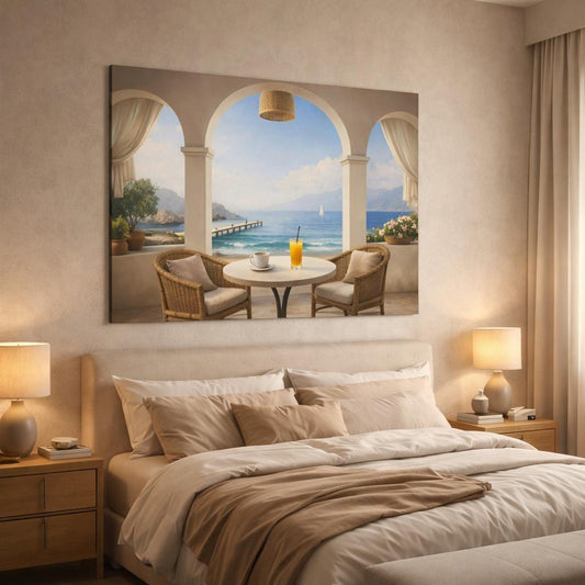 Seascape Seaside Cafe Arch Coastal View Nature - Canvas Wall Art Print