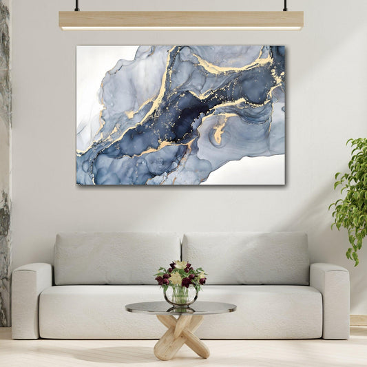 Cream Blue Marble Fashion Canvas Prints - Abstract Luxury Gold Home Wall Art