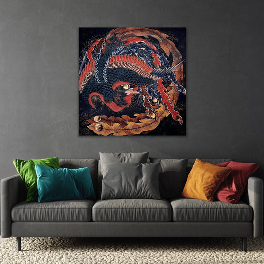 Katsushika Hokusai Phoenix - Japanese Square Framed Canvas Wall Art Print