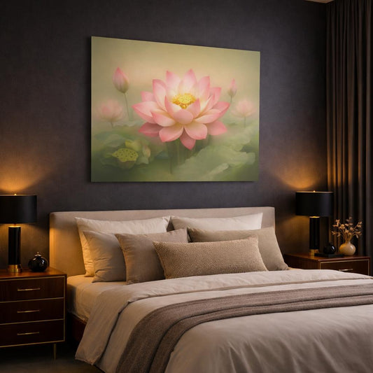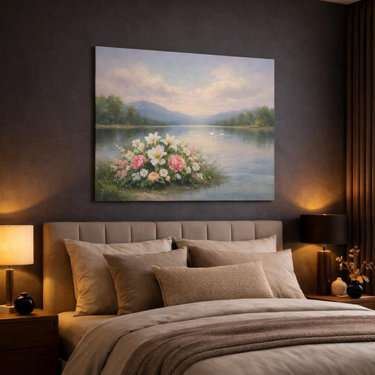 Floral Peaceful Lake Flowers Nature - Canvas Wall Art Print