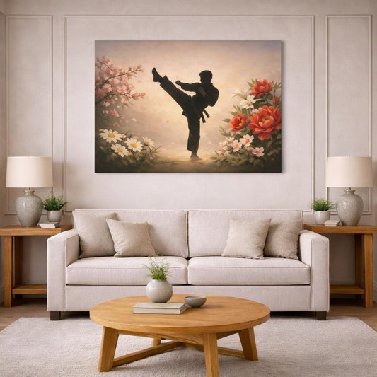 Floral Karate Martial Artist Nature - Canvas Wall Art Print