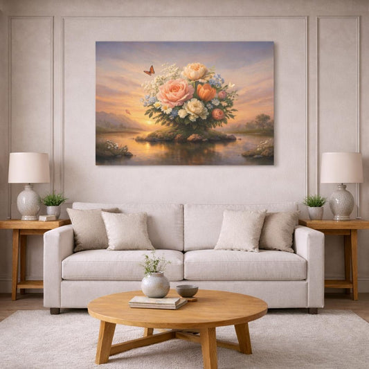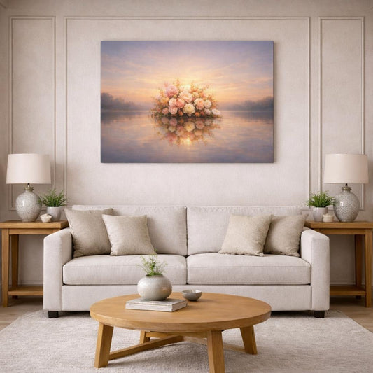 Floral Sunset Reflection Flower Bouquet - Canvas Wall Art Print