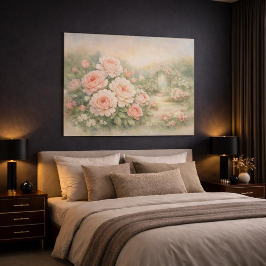 Watercolor Rose Garden Pink Roses Floral - Canvas Wall Art Print