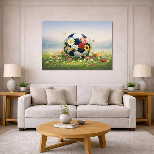 Floral Soccer Ball Sports - Canvas Wall Art Print