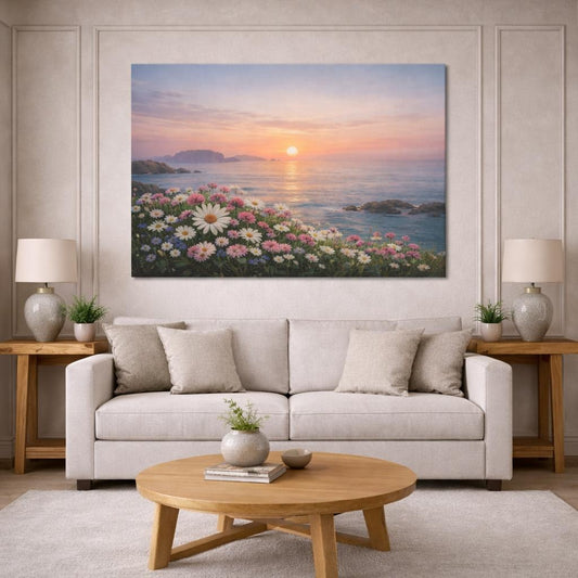 Vintage Ocean Flowers Coastal Landscape Floral - Canvas Wall Art Print