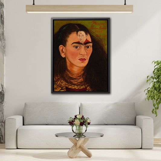 Mexican Wall Art Painting Reproduction in Exclusive Frame - Frida Kahlo Diego y yo Canvas Prints