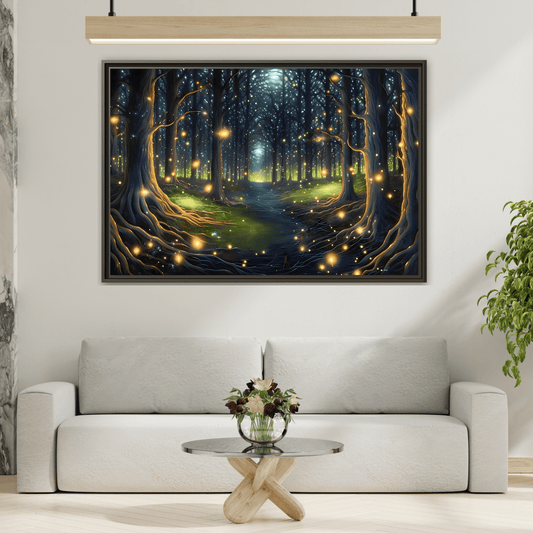 Fireflies Magic Trail Canvas Print, Electric Forest Illumination Wall Art