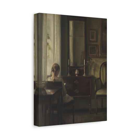 Carl Vilhelm Holsoe Young Girl Reading Painting - Canvas Wall Art Prints