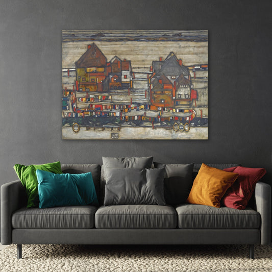 Egon Schiele Houses With Laundry Suburb - Canvas Wall Art Print