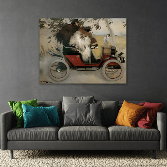 Ramon Casas and Pere Romeu In An Automobile - Canvas Wall Art Print