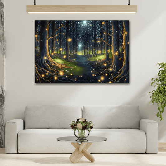 Fireflies Forest Trail Canvas Print, Magic Illumination Wall Art