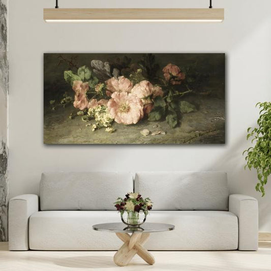 Vintage Vibrant Bouquet Pink Roses Canvas Print - Floral Wall Art Reproduction Prints
