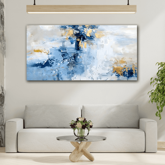 Blue White Abstract Print on Canvas - Large Contemporary Home Decoration