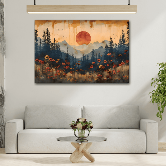 Full Moon Wildflower Canvas, Moonlit Forest Rustic Mountain Wall Art