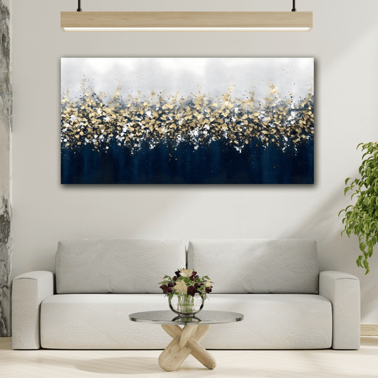 Large Navy Blue Gold Leaf Canvas - Abstract Wall Art Print