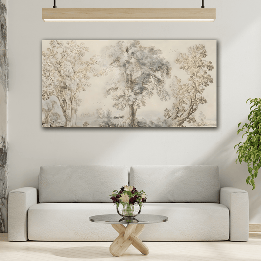 Muted Canvas Large Wall Art - Abstract Sketch Wilderness Forest Landscape Print
