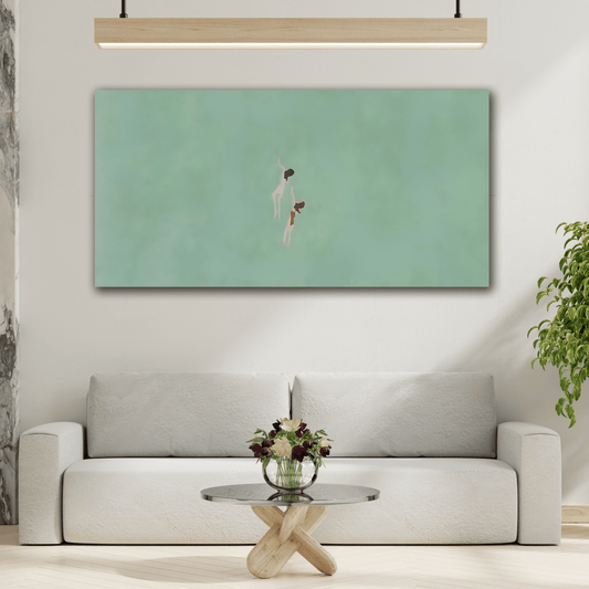 Swiming into the Green Sea Canvas - Vintage Retro Minimalist Wall art