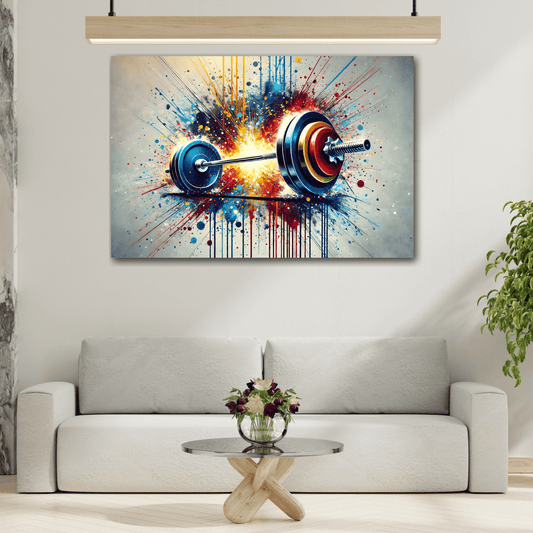 Fitness Weightlifting Canvas Workout Wall Art - Gym Abstract Barbell Painting Print