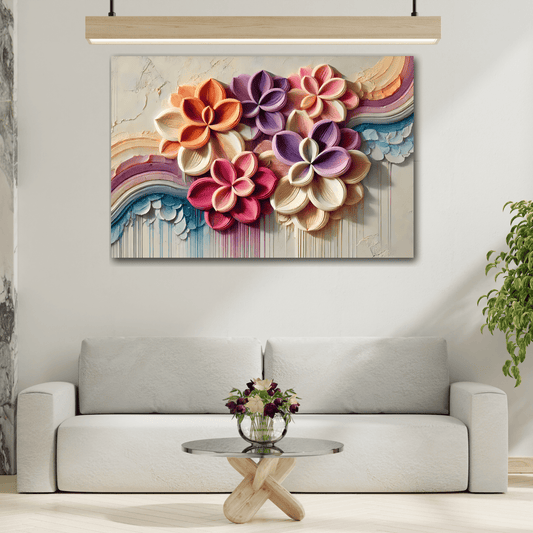 Floral Abstract Wall Art Canvas - Colorful Flower Painting Print Boho Decor