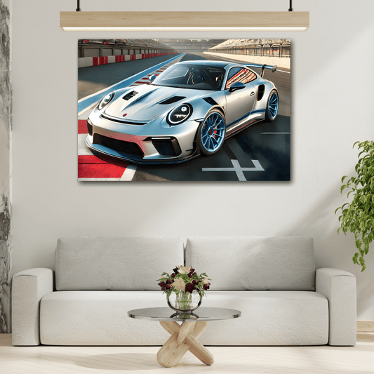Sporty Car Canvas Print - Silver Racing Kids Room Wall Art