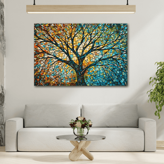 Colorful Tree of Life Mosaic Canvas Print, Nature-Inspired Abstract Wall Art