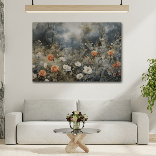 Wildflower Field Wall Art Canvas Print, Nature Floral Minimalist Artwork