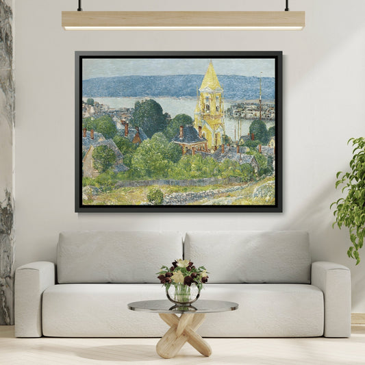 Childe Hassam Shingling the First Baptist Church Gloucester - Framed Canvas Wall Art Print in Black Pinewood Frame