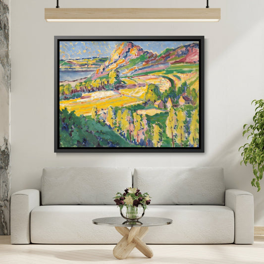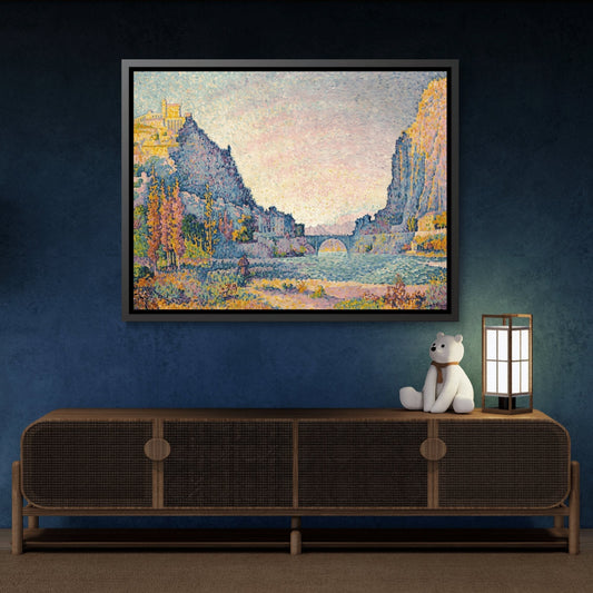 Paul Signac Sisteron - Framed Canvas Wall Art Print in Black Pinewood Frame
