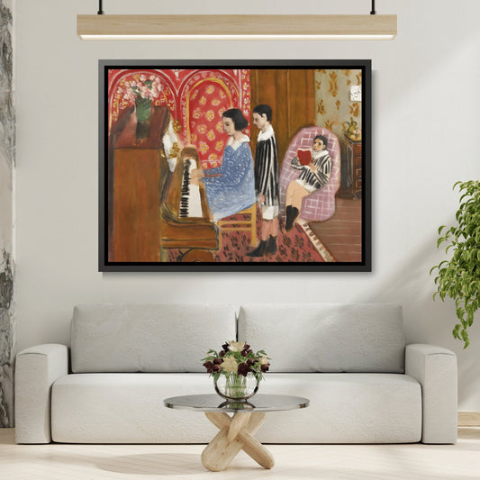 Henri Matisse Piano Lesson - Framed Canvas Wall Art Print in Black Pinewood Frame