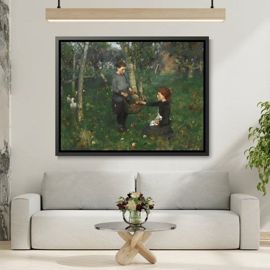 James Guthrie In the Orchard - Framed Canvas Wall Art Print in Black Pinewood Frame