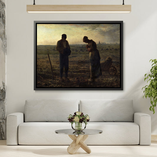 Jean Francois Millet Angelus - Framed Canvas Wall Art Print in Black Pinewood Frame