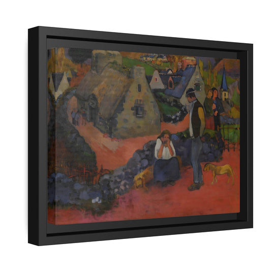 Paul Gauguin Drama in the Village - Framed Canvas Wall Art Print in Black Pinewood Frame