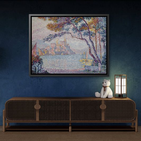 Paul Signac Antibes Evening - Framed Canvas Wall Art Print in Black Pinewood Frame