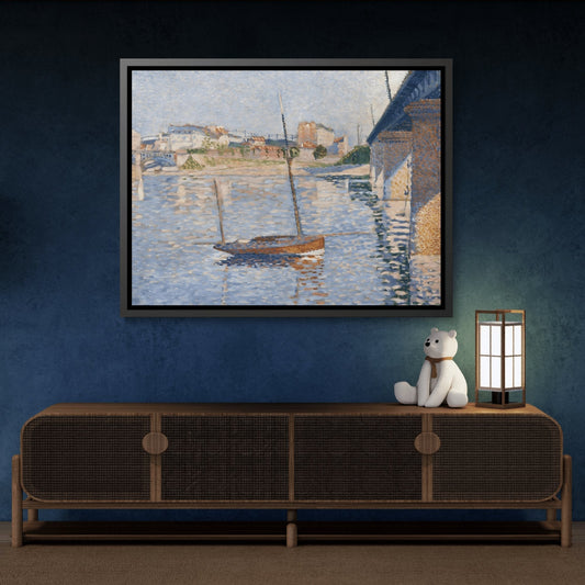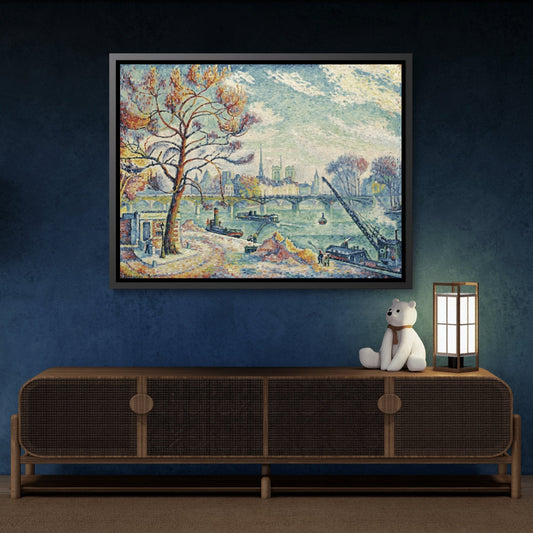 Paul Signac Pont Des Arts Paris - Framed Canvas Wall Art Print in Black Pinewood Frame