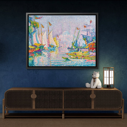 Paul Signac Golden Horn Constantinople - Framed Canvas Wall Art Print in Black Pinewood Frame