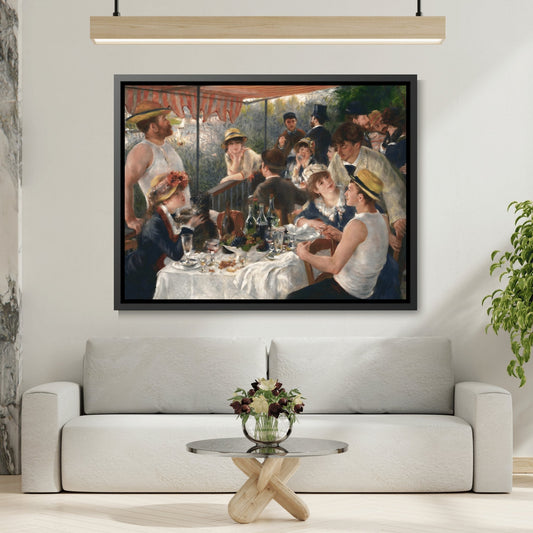 Pierre Auguste Renoir Luncheon of the Boating Party - Framed Canvas Wall Art Print in Black Pinewood Frame
