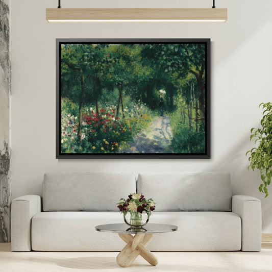 Pierre Auguste Renoir Women in a Garden - Framed Canvas Wall Art Print in Black Pinewood Frame