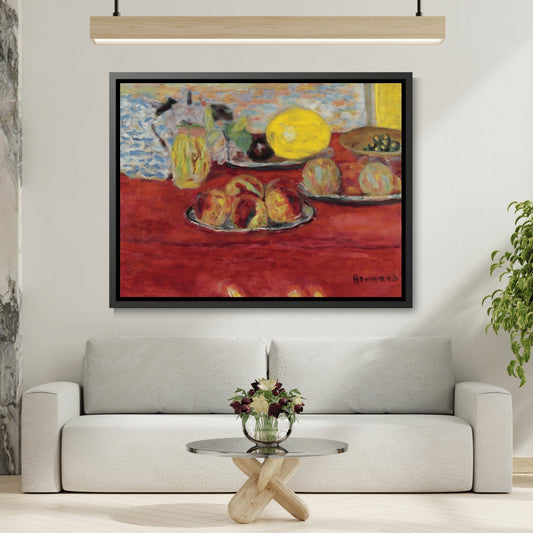 Pierre Bonnard Still Life With Melon - Framed Canvas Wall Art Print in Black Pinewood Frame